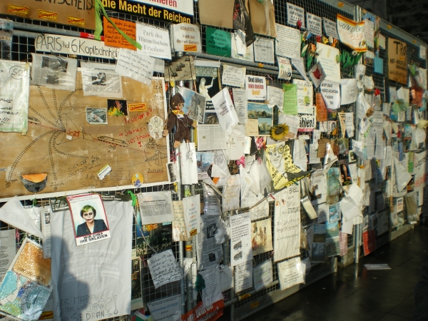 Dann gings zur Präsentation mit Kaffeepause, Snack, Mittagessen usw. Gegen etwa 16.20 Uhr waren wir fertig und es ging zurück in Richtung Hauptbahnhof – Natürlich führte uns unser Weg kurz am Stuttgart 21 Gelände vorbei und ich war schon sehr “überrascht” wie viele Plakate dort an dem Zaun hängen. Eigentlich hätte es mir ja klar sein sollen, aber es dann in “live” nochmal zu sehen, bringt irgendwie ganz andere Emotionen mit sich. Hier nur ein kleiner Zaunabschnitt: