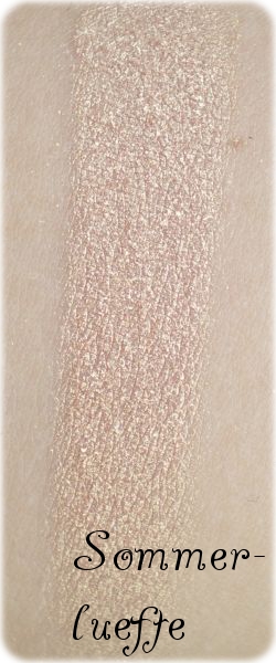 Sommerlüfte (Sleeping Under a Mandarin Tree): Dieses Pigment ist ein goldener Peachton, der das Auge zum Leuchten bringt, wenn man ihn im Innenwinkel verwendet. Aber auch so kann er für einzelne Akzente genutzt werden.
