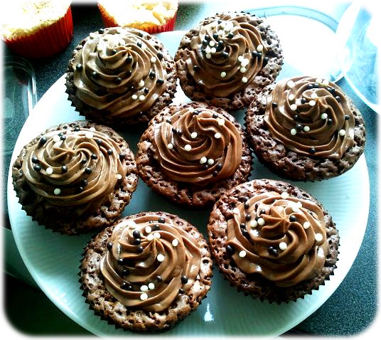 Da ich bis spät in die Nacht gebacken hatte, konnte ich leider nicht alle Schritte fotografisch festhalten. Deshalb gibt es dieses Mal nur die fertigen Leckerbissen zu sehen. Aber ich denke, alles andere erklärt sich auch von selbst. Beginnen möchte ich mit den: Schokoladen-Nutella-Cupcakes.