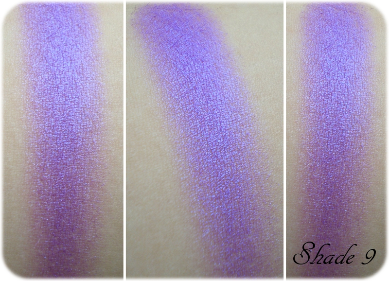 Kurz: Die Textur ist mir fast ein wenig zu feucht, aber insgesamt lässt er sich trotzdem gut und extrem deckend verarbeiten. Die Swatches oben sind alle komplett ohne Base entstanden und der duochrome Schimmer kommt nur halb so gut heraus, wie er in der Realität aussieht – stellt es euch also noch etwas strahlender vor 🙂 Farblich ist Shade 9 demnach wirklich eine Granate, bei der man mit £1.00 nicht viel falsch machen kann.