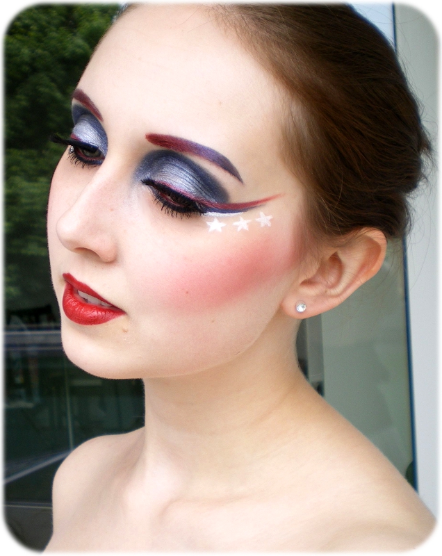 Bei der Form auf den Augen habe ich mich entschieden, sie rundlich zu halten – angelehnt an das große, runde Schild. Zuerst war auch meine Überlegung, die typischen Sterne ins Make-Up direkt einzuflechten, aber letztendlich ist meine Wahl doch auf den Platz unter dem Lidstrich gefallen. Zumal die drei Sterne ideal zu Captain Americas “Wappen” und ursprünglichem Schild passen.