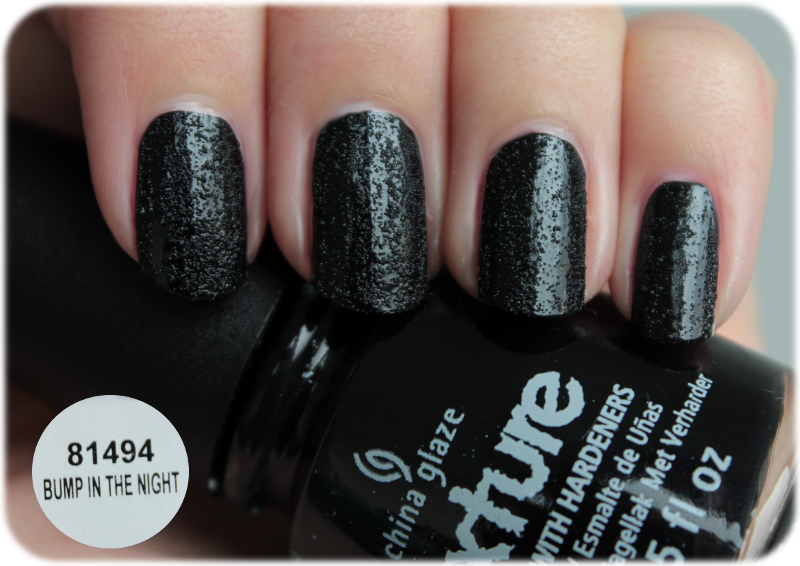 Bump in the Night: Kommen wir wiederum zu dem Lack, von dem ich am wenigsten erwartet hatte, da ich einfach kein Fan, der “matten” Texturelacke ohne Glitzer bin. Die Deckkraft ist hier zwar phänomenal – eine Schicht deckt perfekt – aber der getrocknete Effekt ist nichts für mich. Es wirkt sehr zuckrig und irgendwie einfach krümelig. Als hätte man sich lauter Blasen in den schwarzen Lack gehauen. Wer solche Lacke aber mag, der kann qualitativ in Bump in the Night einen perfekten Kandidaten finden. Vorausgesetzt ihr besitzt Sally Hansens Lick’o’Rich noch nicht, da dieser recht ähnlich ist.