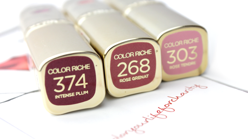 Fazit: Auch wenn ich mir Rose Tendre nie gekauft hätte und verschenken werde, kann er qualitativ mit Rose Grenat und Intense Plum mithalten. Denn alle Color Riche Lippenstifte fühlen sich sehr angenehm an, decken gut und duften einfach traumhaft. Wer also Lippenstifte liebt und gleichzeitig was Gutes tun möchte, sollte sich die Charity-Kollektion einmal ansehen.