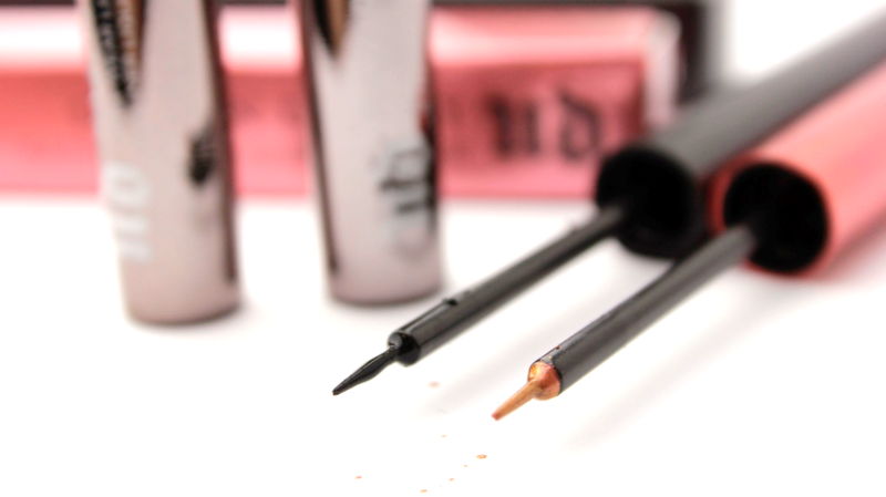Tatsächlich sind die Produkte der heutigen Review schon seit über einem Monat in Benutzung. Allerdings war ich mir in der ersten Woche nicht ganz sicher, ob es an meinen (nicht vorhandenen) Skills liegt oder ob die Pinsel wirklich so blöd sind. Aber ich kann euch beruhigen: Schuld war wirklich mein mangelndes Talent, das dafür gesorgt hat, dass ich mit den Urban Decay Liquid Linern erstmal warm werden musste.